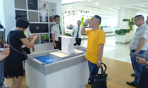 12日,来自浙江近40名经销商参与了本次私董会,在参观大型厨电展厅时对移动水吧体验台赞不绝口,纷纷表示移动水吧这台净饮一体机突破传统做到了极致!演示中,带有泥沙、墨水的脏水通过上派移动水吧四膜七级过滤之后,净出一杯可饮用的纯净水,使得经销商对移动水吧产生了浓厚的兴趣!