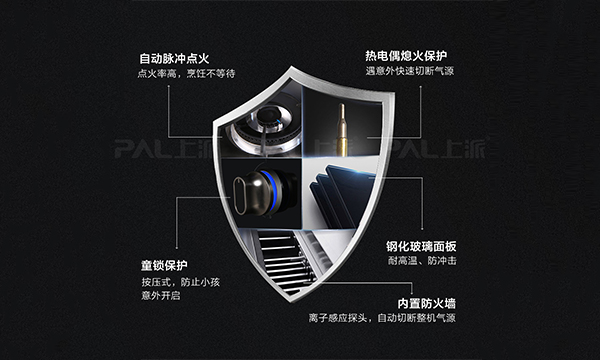 集成灶台面玻璃爆炸事故频发,伤人事件也不少,集成灶十大品牌上派集成灶采用黑晶防爆玻璃台面,防爆指数升级,更安全、更耐用,另外采用天衣无缝防渗漏设计,清洁更方面,使用更安全。针对汤汁溢出浇灭火焰而导致的煤气泄漏危险,上派集成灶带有熄火?;すδ埽庇龅饺计馔庀鹗?,即刻断开气源、电源,再也不用被“熬干锅”的恐惧支配,保障了用户的安全。