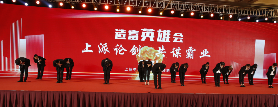 伴随着上派家人们的集体入场,上派电器总经理、上派电器董事会董事黄艳带领全体家人们共同喊出上派口号,宣布年会下午场--战略发布会正式开始。首先开场的是上派营销中心团队带来的风采展示环节,感谢公司给予展现平台,感谢对手给予成长激励,感谢队友配合帮助,未来营销中心全体人员将不忘初心,砥砺前行。