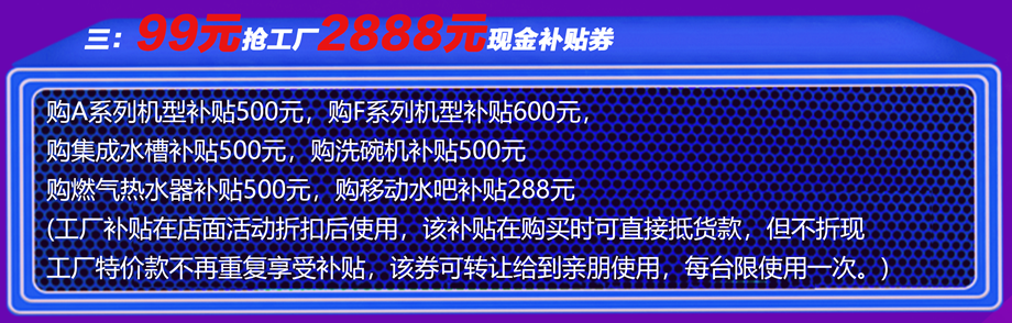 钜惠三:99元抢工厂价2888元现金补贴券