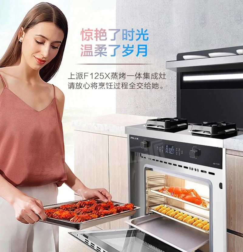 集成灶十大品牌上派集成灶一机多能,能蒸善烤,蒸烤两不误,美食不串味,十大模式30-200℃广域控温,自由发挥你的烹饪创意,智能菜单八大蒸煮烤模式,一键轻松选择美味,只需备好料,剩下的就放心就给上派集成灶。