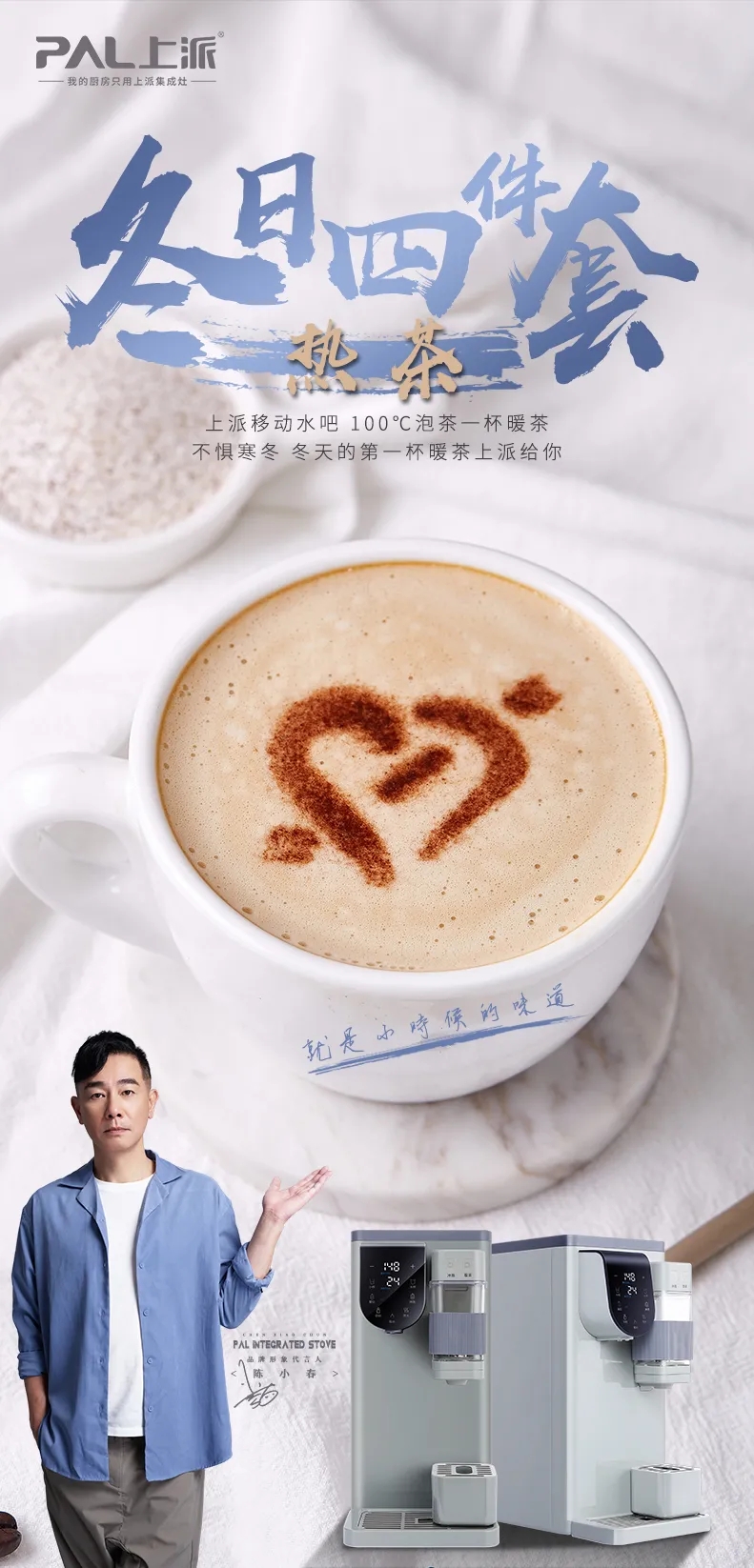 冬天独特的浪漫,应该就是下雪天捧一杯热腾腾的奶茶,和心爱的人,漫步在雪中。上派移动水吧100℃泡茶。不惧寒冬,冬天的第一杯暖茶上派给你。