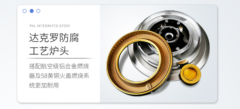 达克罗防腐工艺炉头,搭配航空级铝合金燃烧器及58黄铜火盖,为燃烧系统的寿命与安全保驾护航。