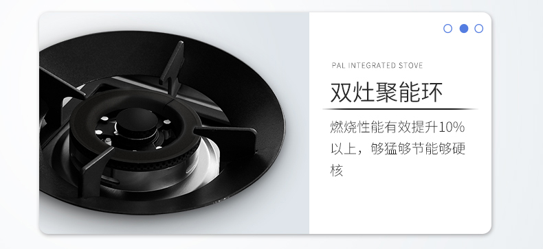 双灶聚能环设计,燃烧性能有效提升10%以上,更节能、更环保。