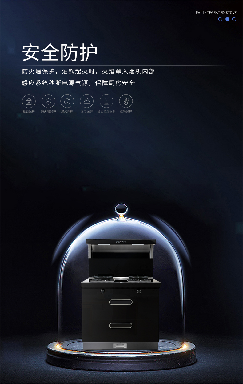 贴心防火墙保护功能,当油锅起火时,一旦有火焰窜入烟机内部,防火感应系统秒断电源气源,保障厨房安全。