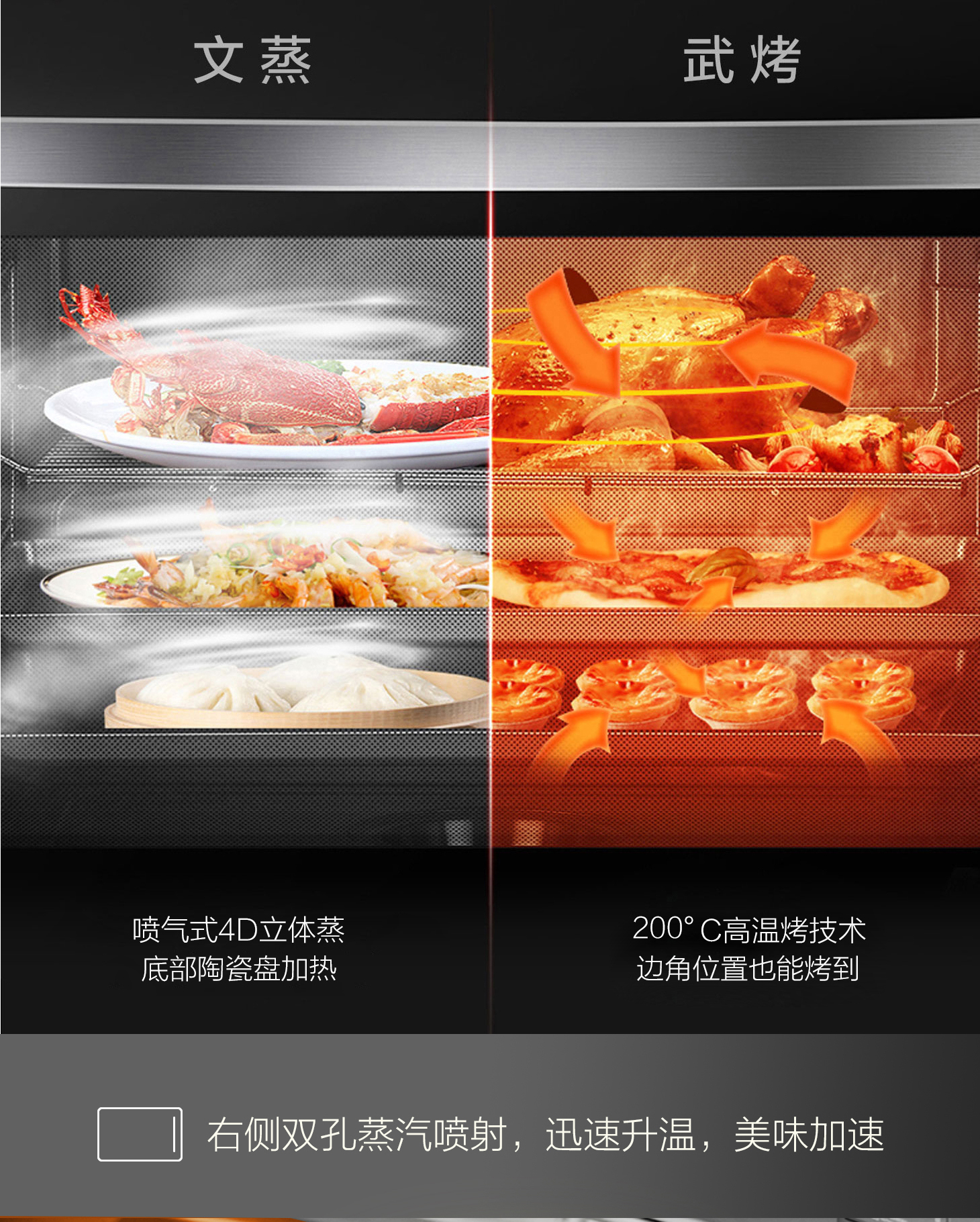 上派蒸烤消一体集成灶,能满足你多重烹饪需求。不管你是想吃烤鱼、烤鸡、还是烤羊排,亦或是蒸大虾、蒸鲈鱼、蒸排骨,有了上派集成灶,所有美味信手拈来。