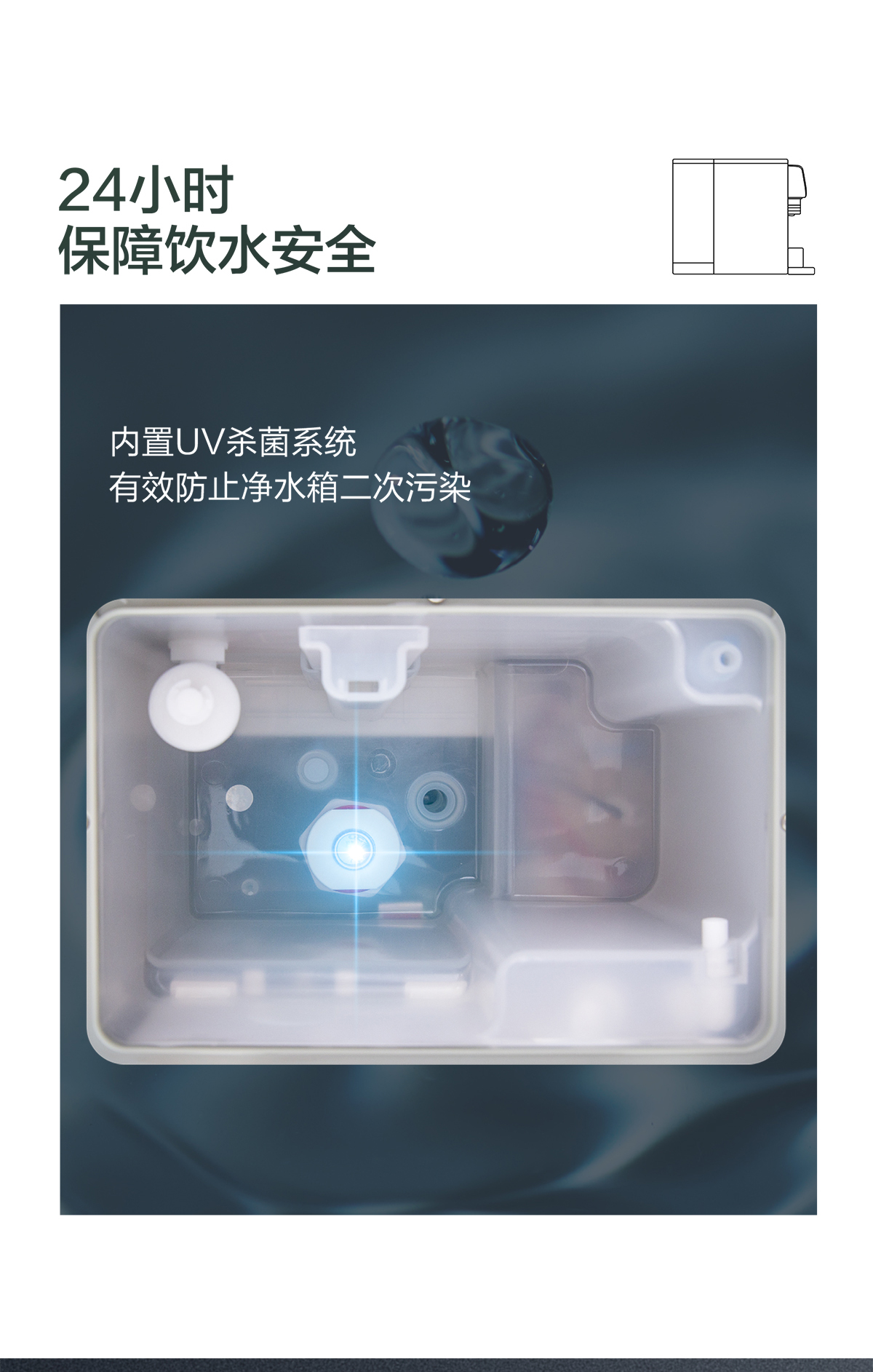 上派多功能移动净水器的守护可不是这么简单!在RO精滤的基础上,上派多功能移动净水器更内置UV杀菌系统,防止净水箱二次污染,双重守护,双重净滤,无懈可击。