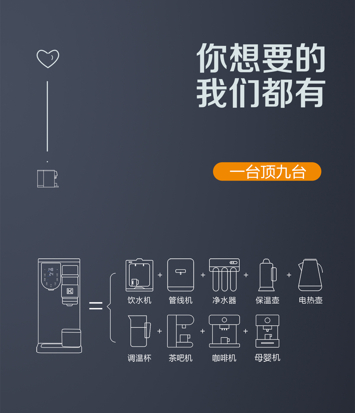 所以,你的健康,需要一台上派多功能移动净水器来守护!上派多功能移动净水器摒弃了传统净水器的笨重与局限性,机身小巧,无空间限制,无淹水风险,无售后安装,便捷、安全、快捷,想放哪里放哪里,真正实现随时随地无限净水。