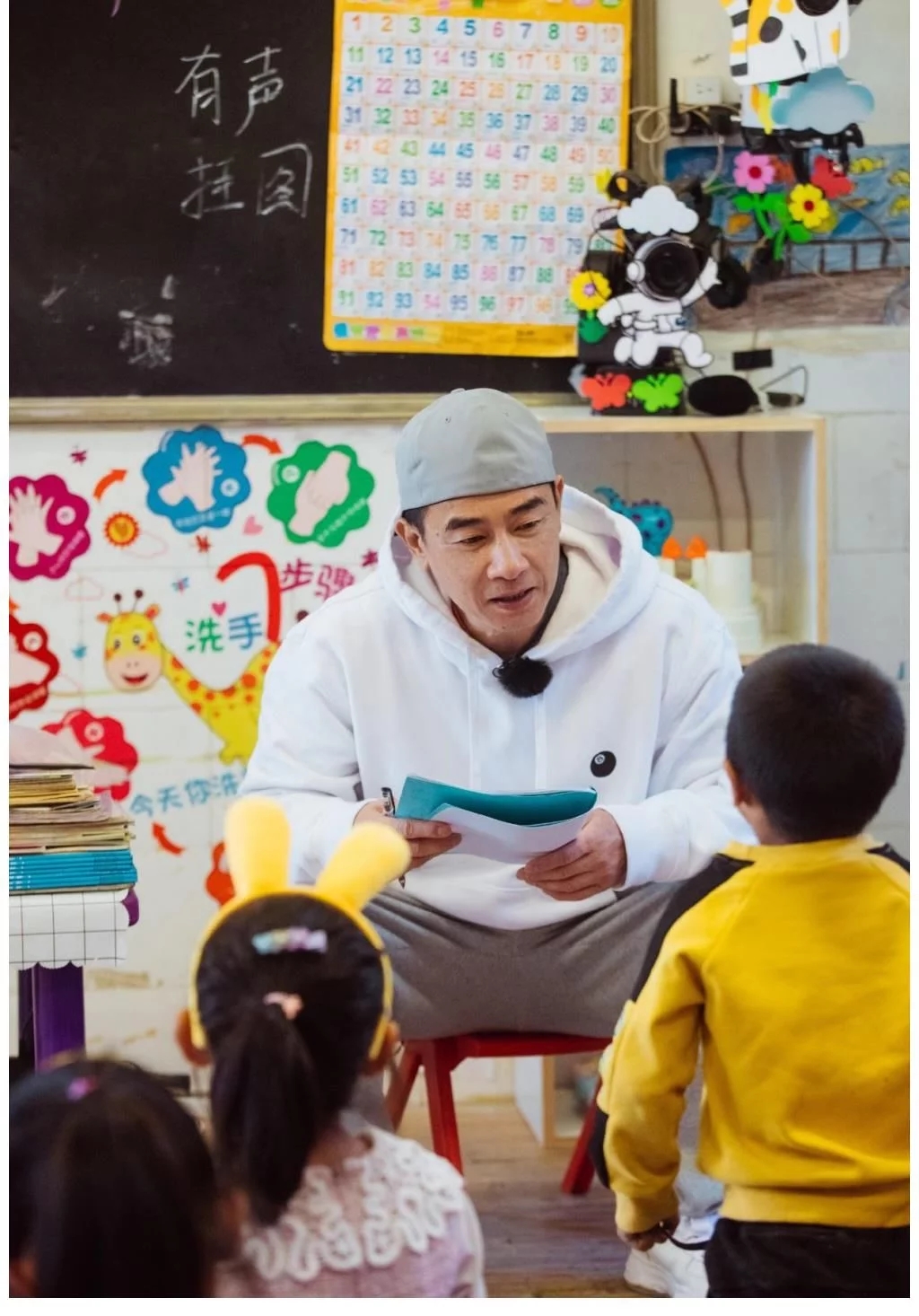 他可以是硬汉,也可以很温柔。当他拿着课本认真的给小朋友讲故事的时候,当他认真听校长说小朋友的性格的时候,当他努力想要照顾好小朋友的时候,他的身上被温柔的光笼罩着,经久不散。