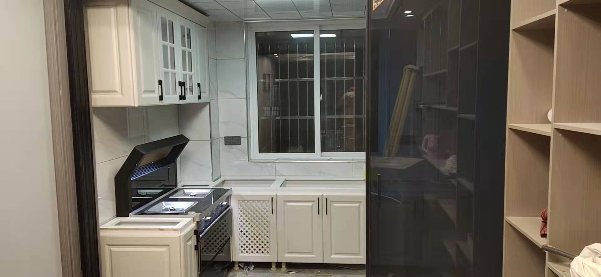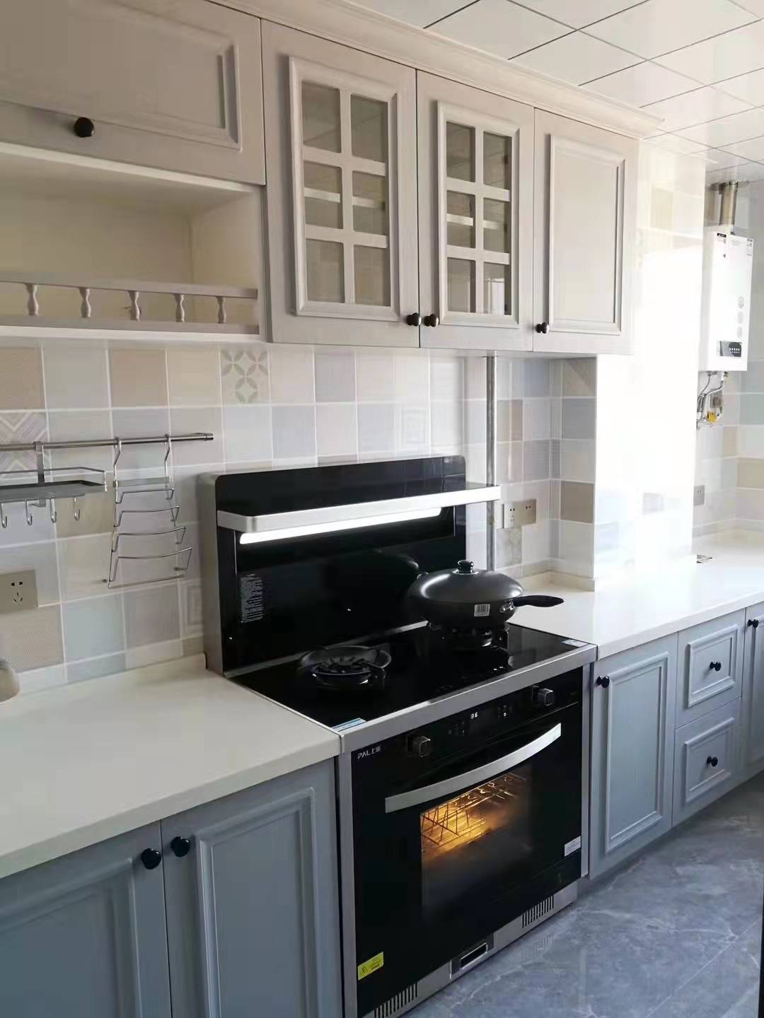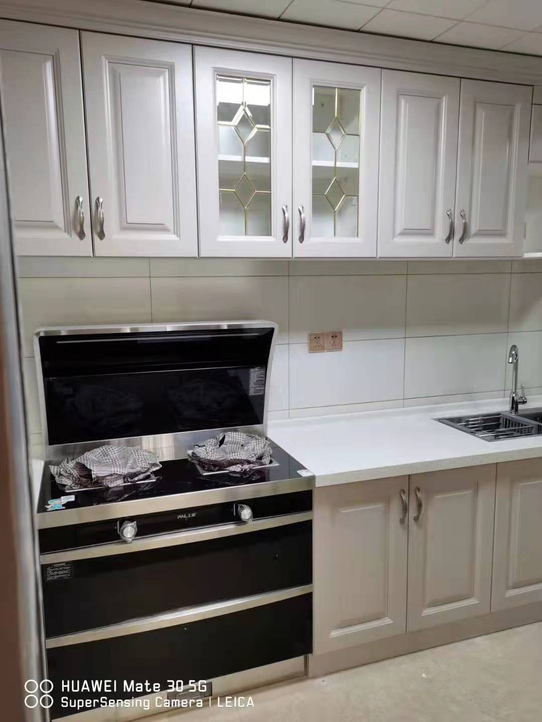 白色永远是人们最喜欢的家具颜色,经典的黑色上派集成灶与白色欧式复古橱柜相互辉映,相得益彰,一切都是刚刚好的美感,衬映出厨房的优雅与浪漫。