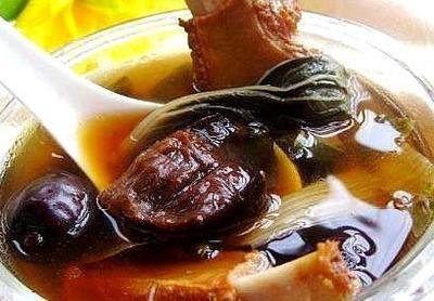 3、倒入生抽酱油、高汤、香油和水煮滚,关火