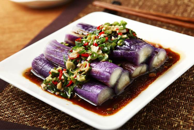 茄子(紫皮,长)3根,小葱适量,香油适量,酱油适量,食盐适量,白糖适量。