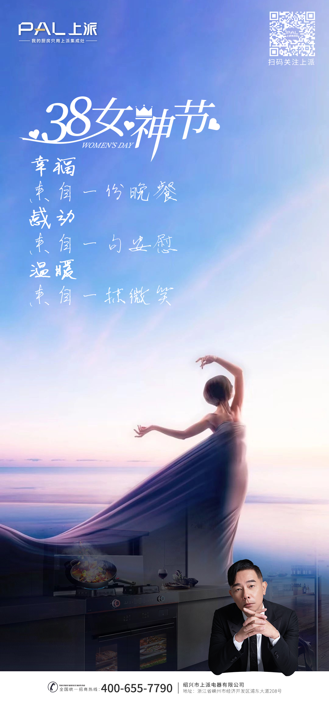 每一个女神都应该得到上派集成灶最温柔的呵护,愿天下女神健康美丽,青春永驻,上派集成灶伴你品味最美人间烟火,屏蔽人间油烟!