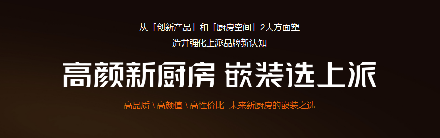 思考品牌战略新赛道,重构品牌用户认知标签,顺势而为另辟蹊径,立足厨房空间锚定细分领域。由传统厨电中心化转变成为集成灶,再由集成灶去中心化转变成嵌装集成灶,是上派电器发展乃至整个行业发展的新道路。