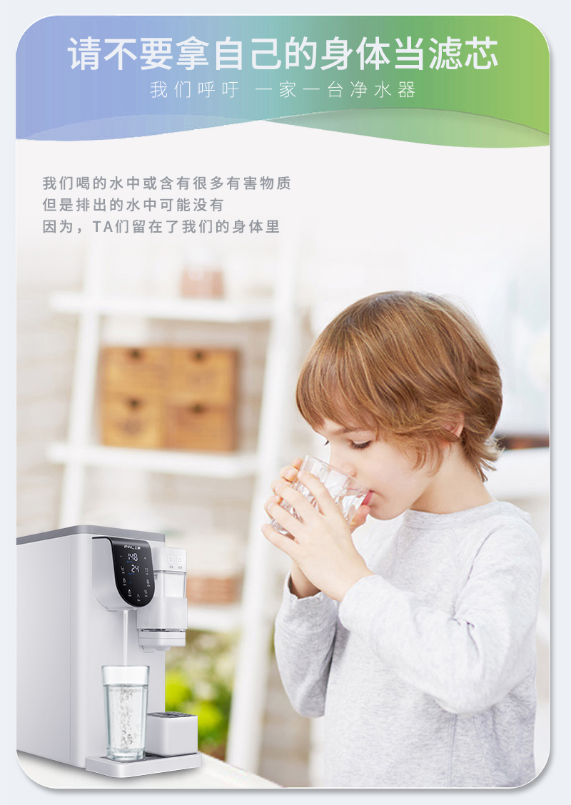 请不要拿自己的身体当滤芯,我们呼吁:一家一台移动水吧!我们喝的水中或含有很多有害物质,但是排出的水中可能没有,因为,TA们留在了我们的身体里。