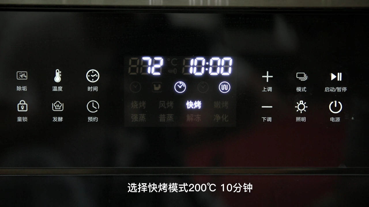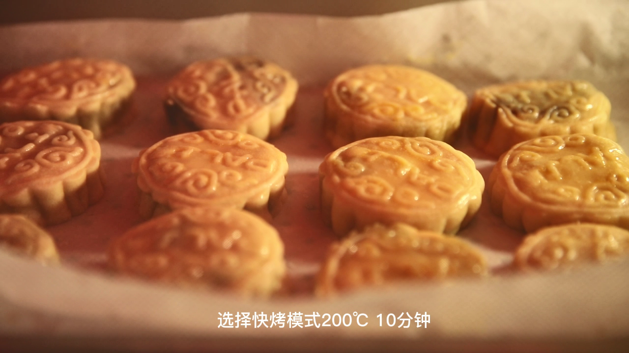 把成型的月饼放入上派集成灶温度调至100°,20分钟即可蒸熟,拿出来放凉后就能品尝美味了。如果想尝试烤的月饼,请继续以下的步骤。