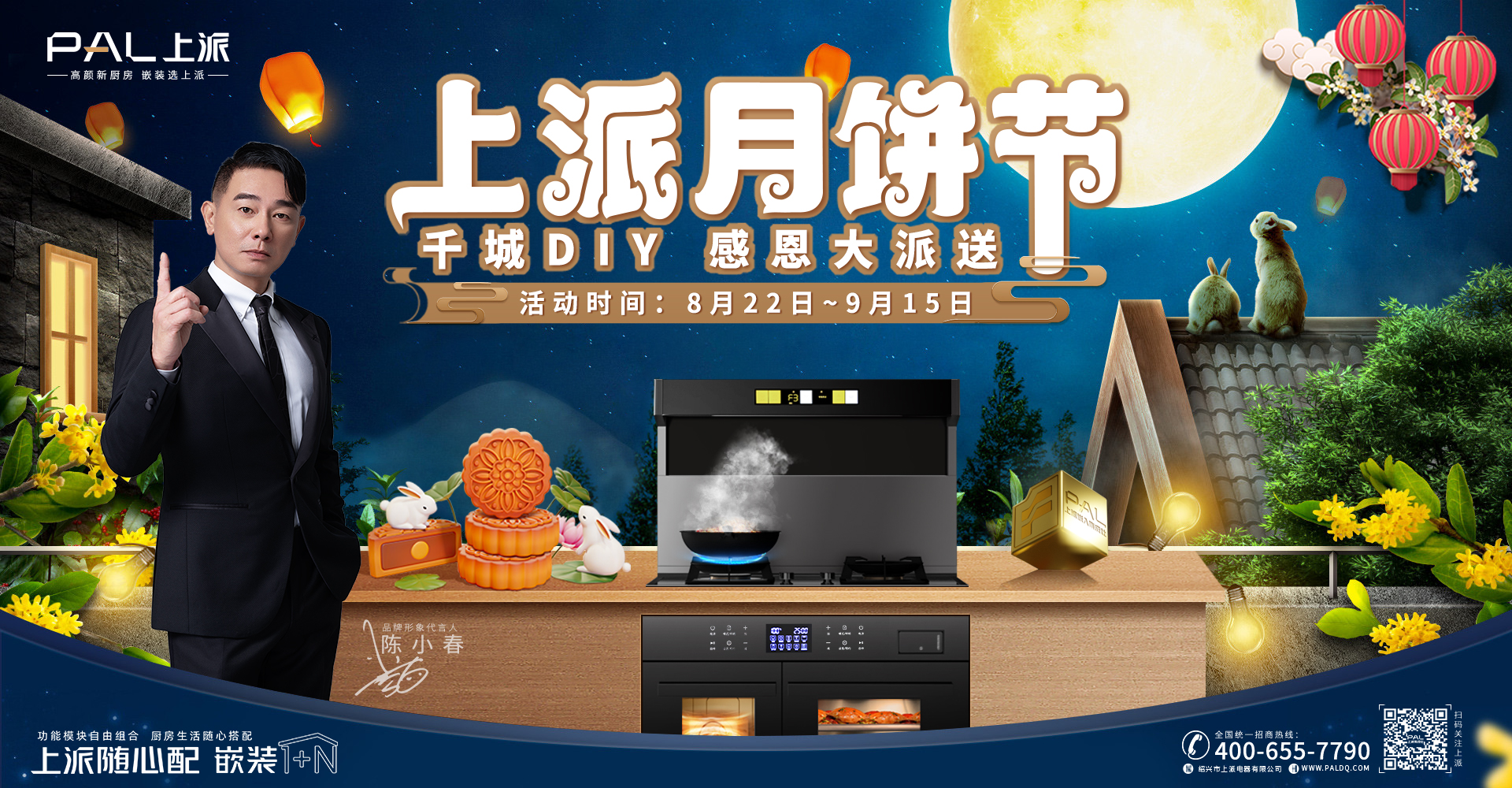 05 【千城DIY&感恩大派送】全国月饼节开启。上派集成灶做月饼,提前感受浓浓节日氛围。上派集成灶女主播手把手教你做月饼,只要前期做好月饼模,剩下的就放心交给上派蒸烤一体全能集成灶!