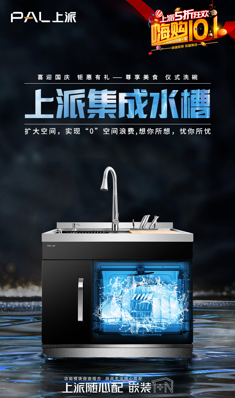 喜迎国庆买就送,活动期间购买任一款上派集成灶,即可获赠1580元集成水槽或(洗碗机)优惠券。