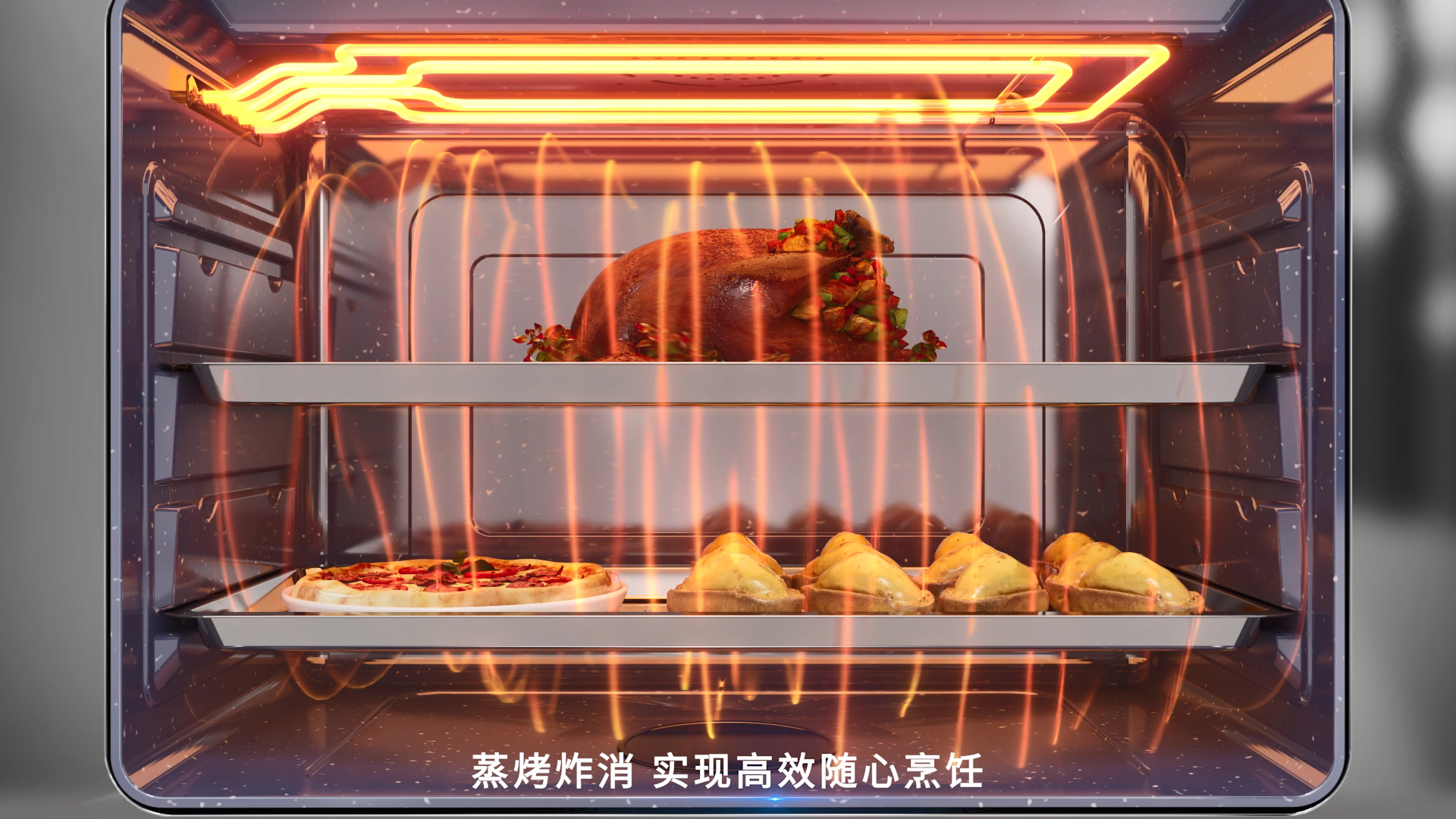气电分离安全无忧,清洁更便捷。360°循环喷蒸均匀受热,蒸烤合一美味食刻共享。