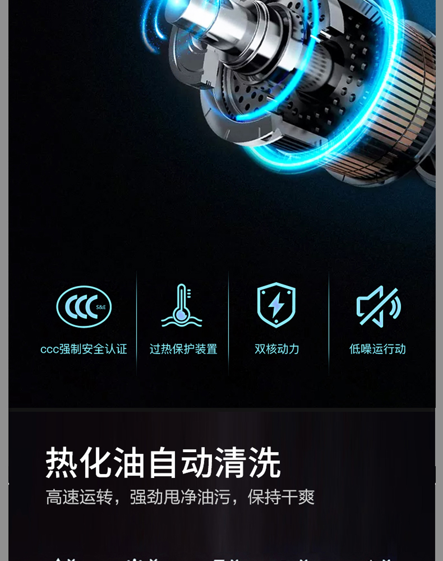 9.风轮一键电加热清洗,高速运转,强劲甩净油污,保持随时干爽