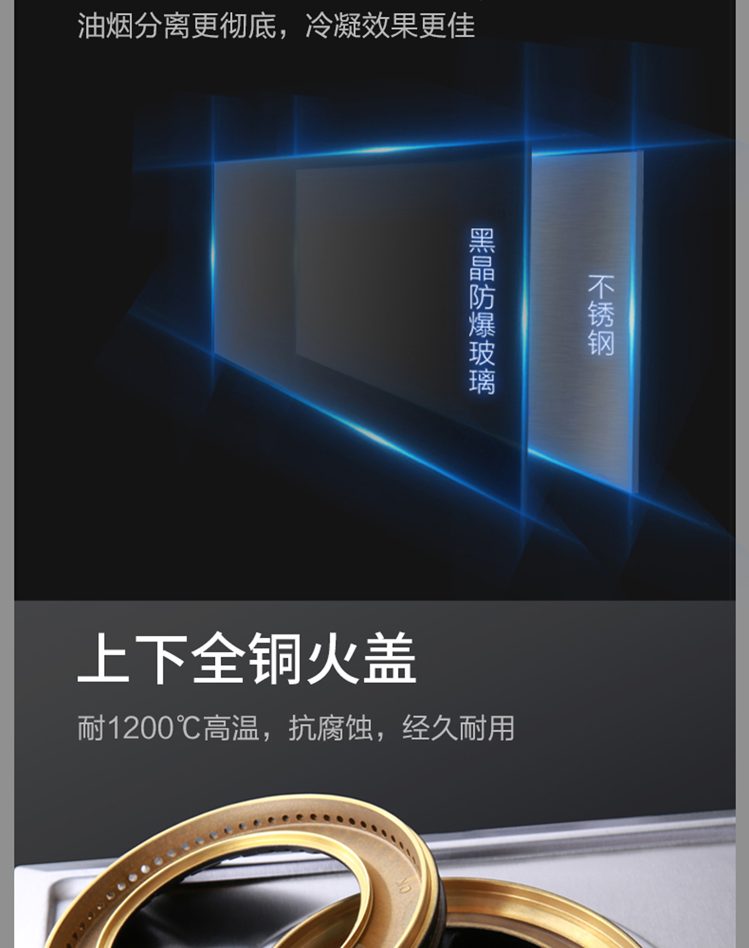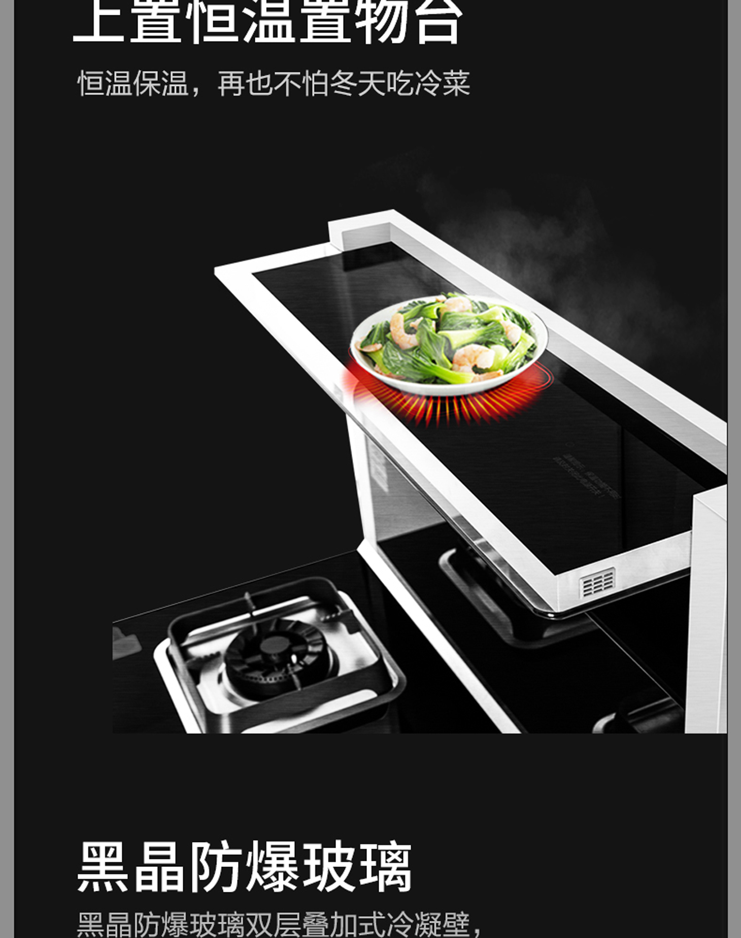 5.黑晶防爆玻璃双层叠加式冷凝壁,油烟分离更彻底,冷凝效果更佳