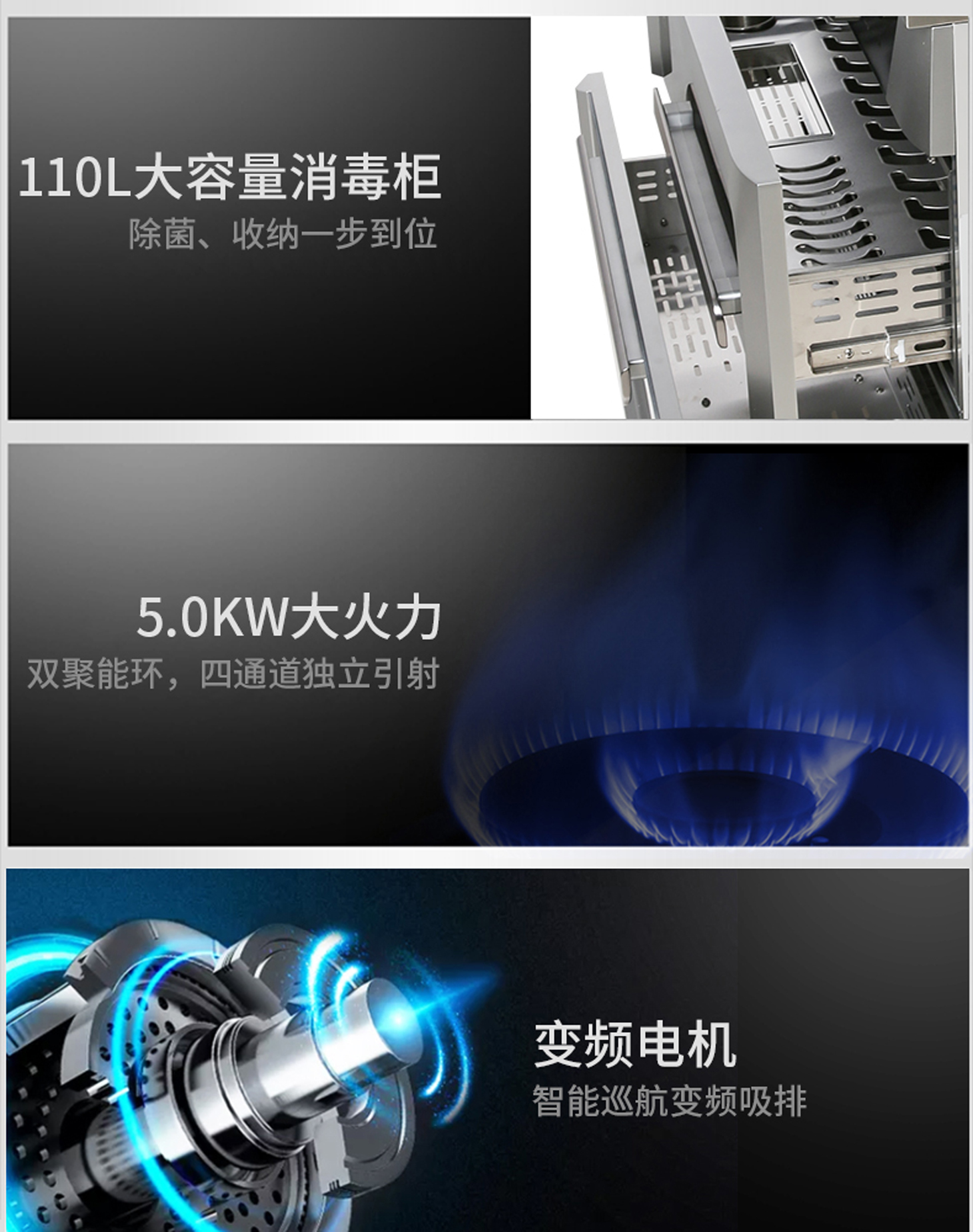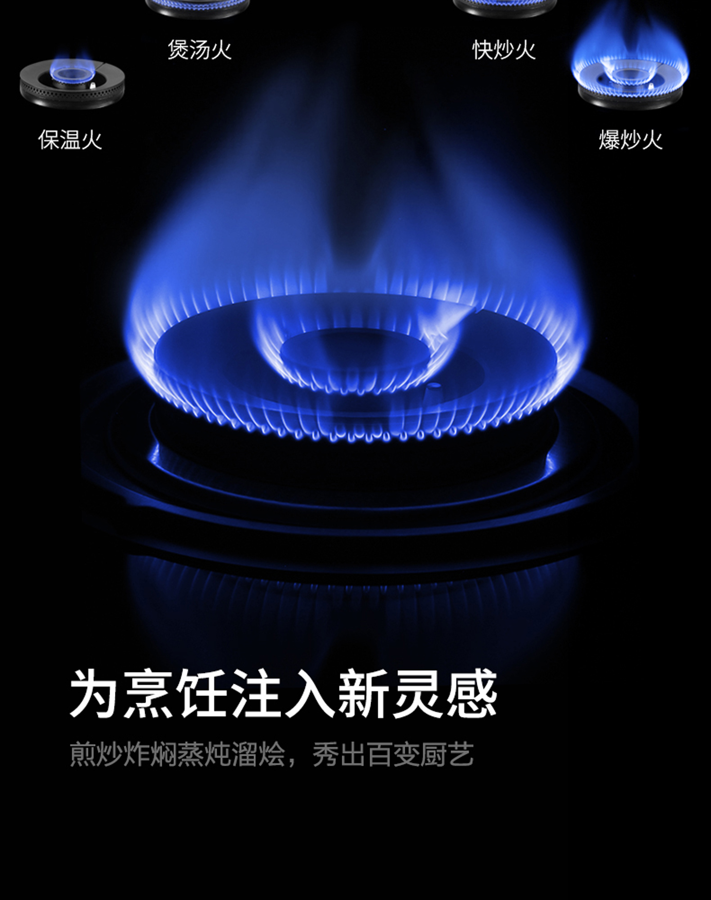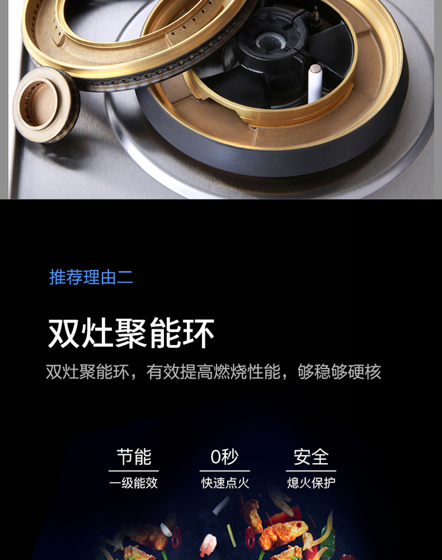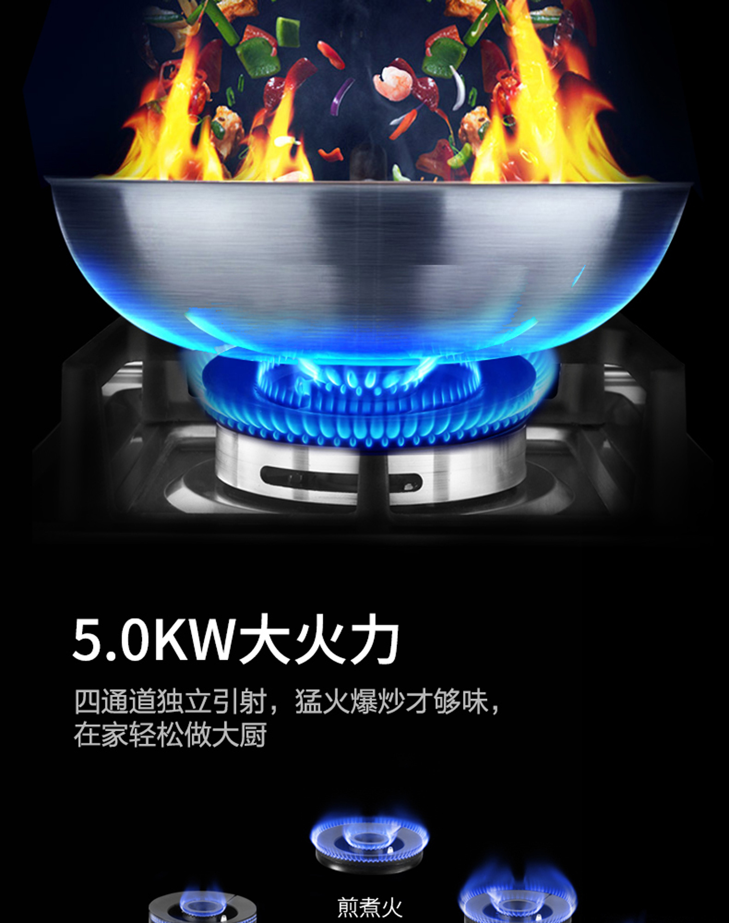 6.双聚能环5.0KW大火力,四通道独立引射,猛火爆炒才够味,