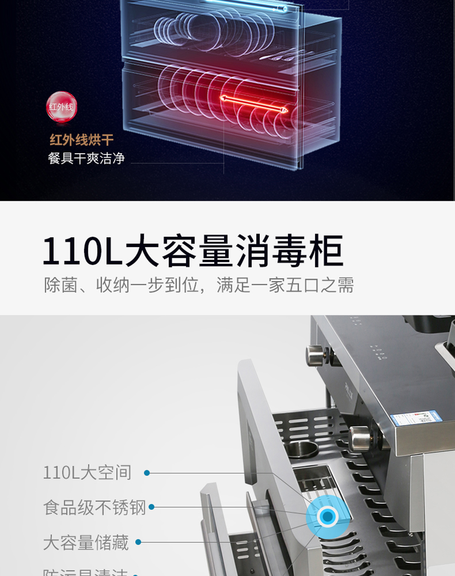 7.110L大容量消毒柜,高低温消毒配置,除菌、收纳一步到位,